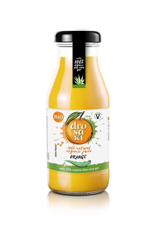 Jus d’aloe vera bio et d’orange bio 100% naturel.